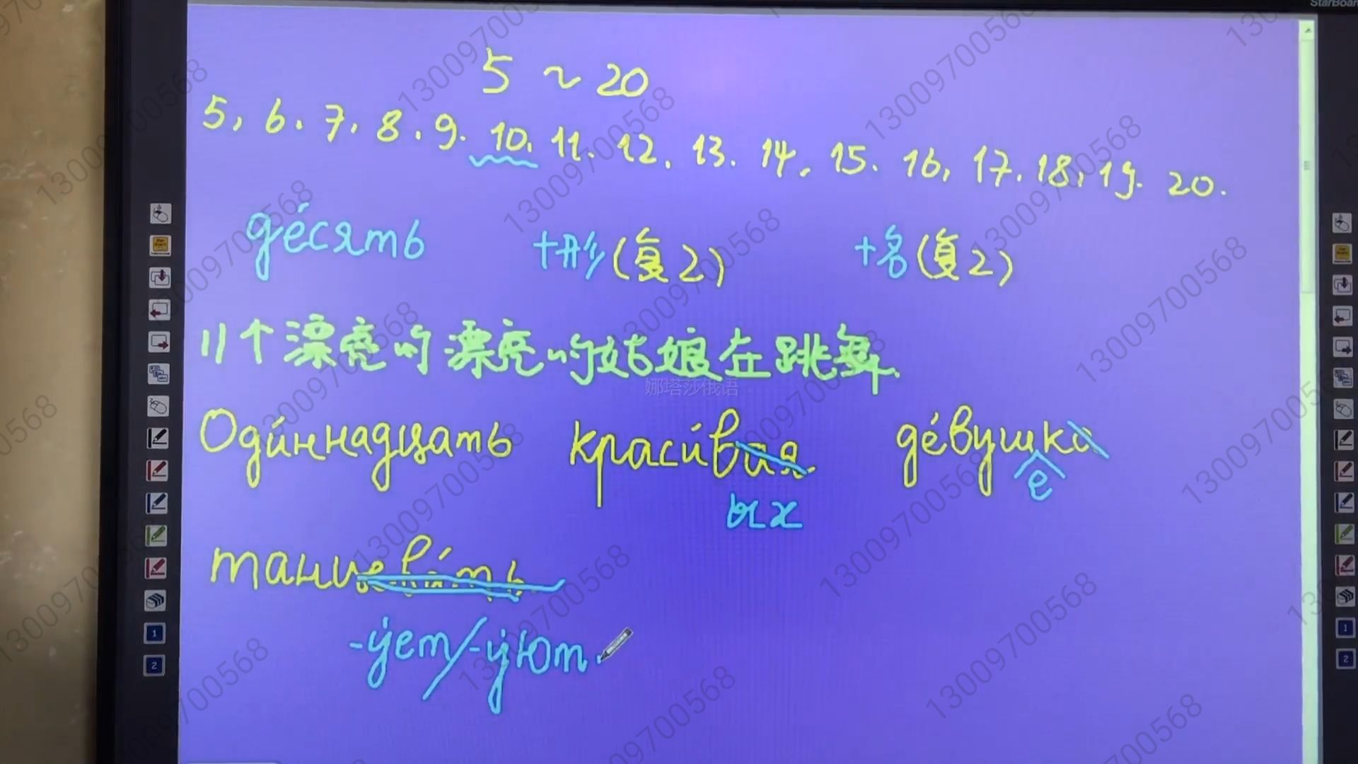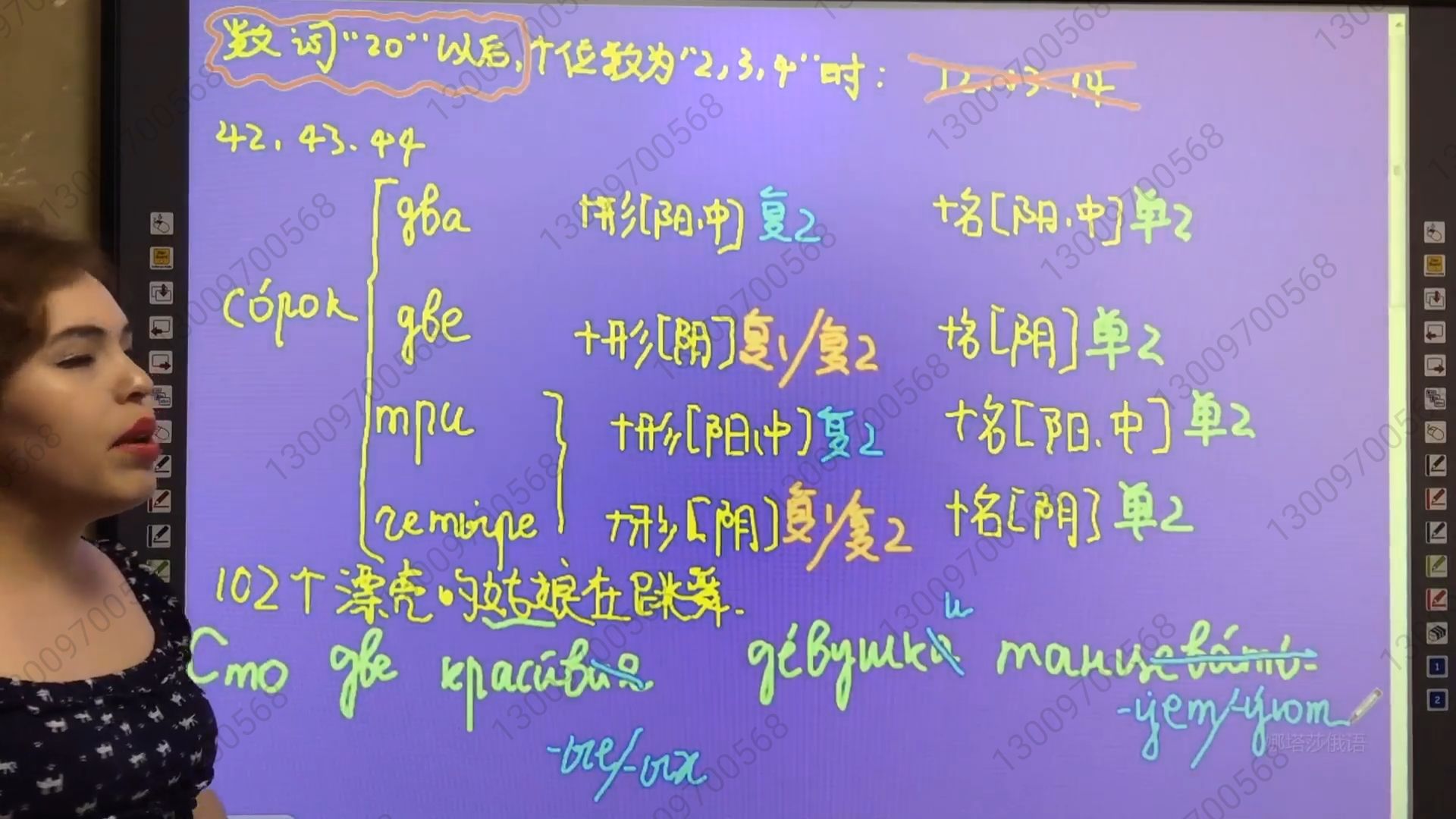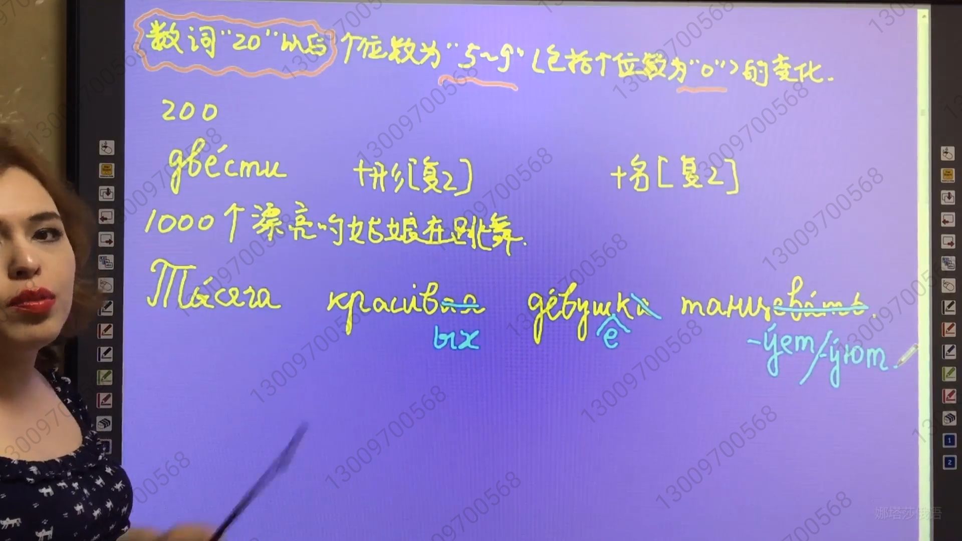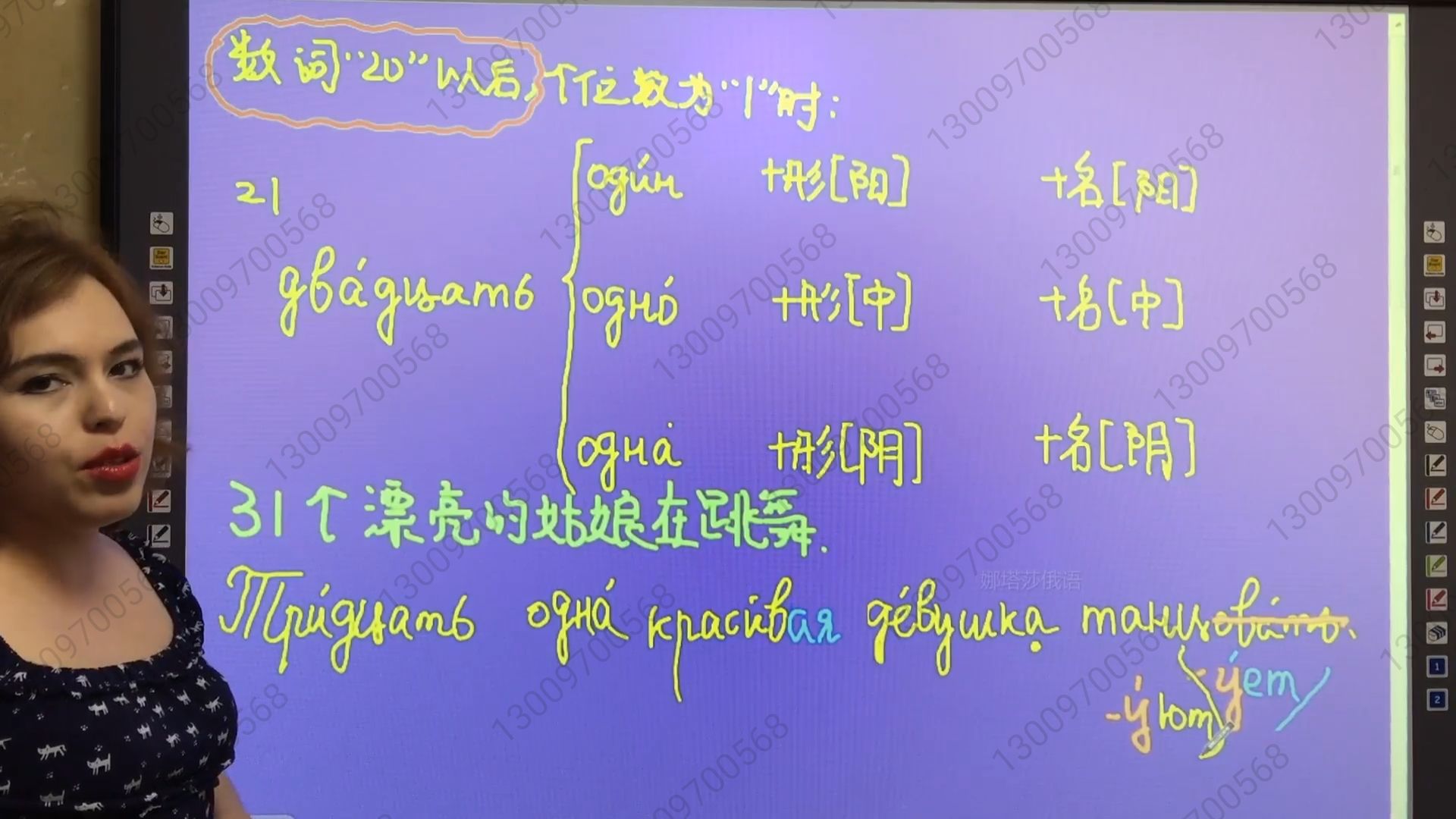 * 强调数字 31 用 танцу́ет,强调 31 个漂亮的姑娘用 танцу́ют